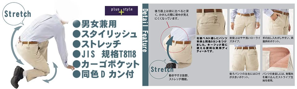 ポリエステル80%・綿20% 帯電防止・ストレッチ