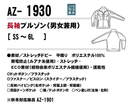 | 長袖ブルゾン(男女兼用)/AZ-1930 |