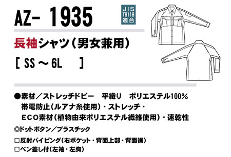 | 長袖シャツ(男女兼用)/AZ-1935 |