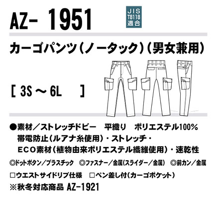 | カーゴパンツ(ノータック)(男女兼用)/AZ-1951 |