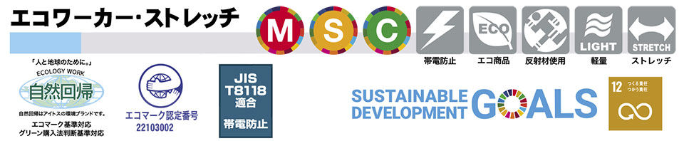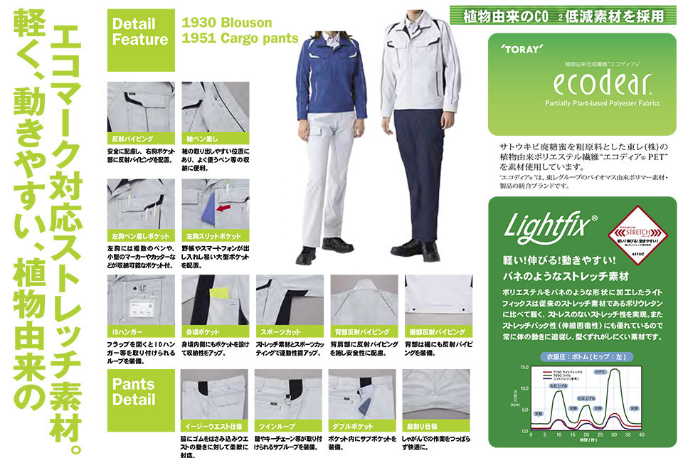 ECO素材(植物由来ポリエステル繊維使用)・速乾性 |