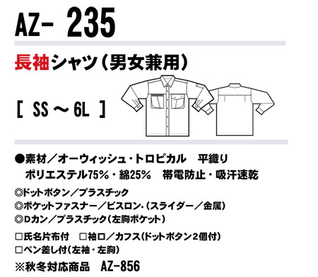 | 長袖シャツ(男女兼用)/AZ-235 |