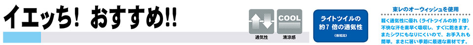 ポリエステル75%・綿25% 帯電防止・吸汗速乾 |