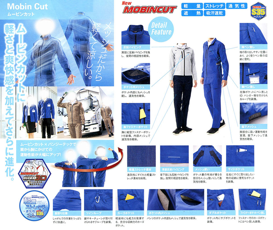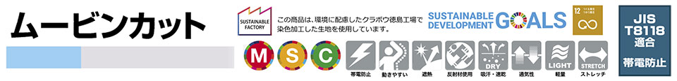 帯電防止・ストレッチ・軽量素材・通気性・遮熱性 |