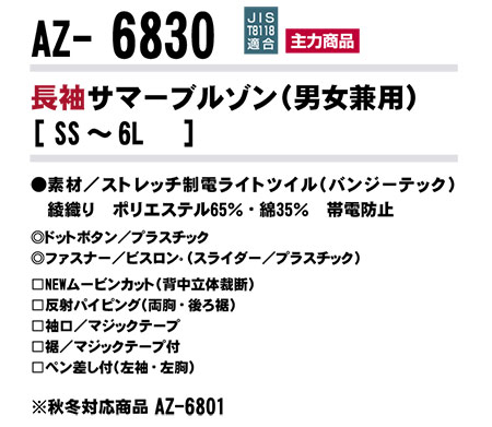 | 長袖サマーブルゾン(男女兼用)/AZ-6830 |