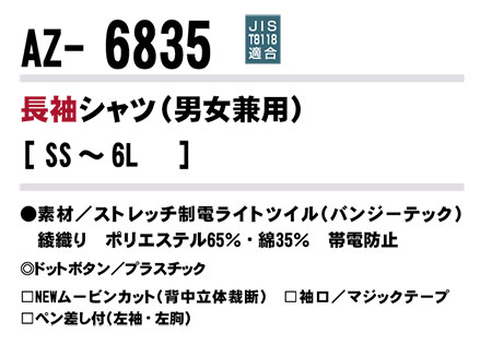 | 長袖シャツ(男女兼用)/AZ-6835 |
