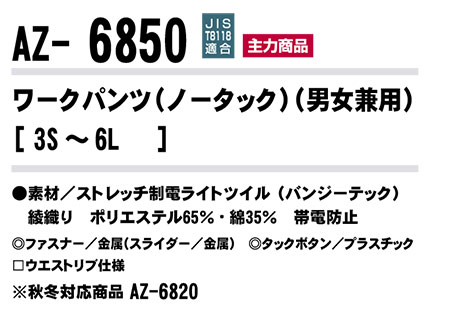 | ワークパンツ(ノータック)(男女兼用)/AZ-6850 |