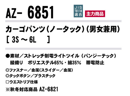 | カーゴパンツ(ノータック)(男女兼用)/AZ-6851 |