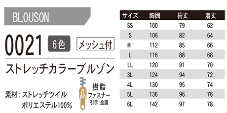 0021/ストレッチカラーブルゾン(メッシュ付)