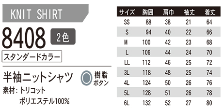 8408/半袖ニットシャツ(スタンダードカラー) |
