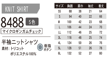 8488/半袖ニットシャツ(マイクロギンガムチェック) |