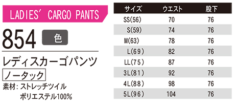 854/レディスカーゴパンツ(ノータック) |