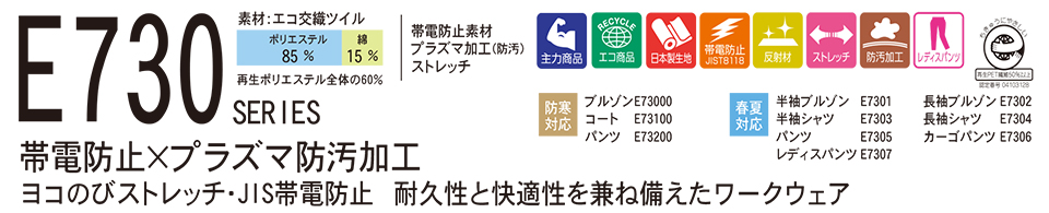 E733/レディスパンツ(ツータック脇シャーリング) |