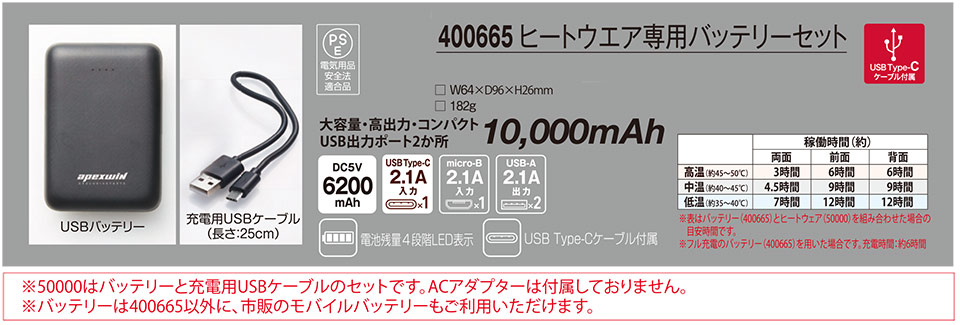 50000/Wスイッチヒートベスト バッテリーセット