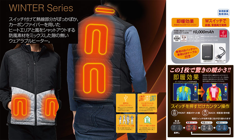 アタックベース (ATACK BASE) 秋・冬シーズン用ユニフォーム(防寒) 50000/Wスイッチヒートベストバッテリーセット