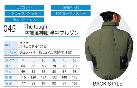 アタックベース 春・夏作業服 空調風神服  045/The tough 空調風神服 半袖ブルゾン
