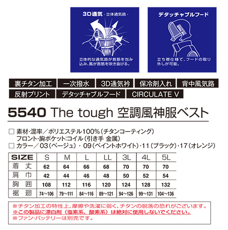 アタックベース 春・夏作業服 空調風神服 5540/The tough 空調風神服ベスト