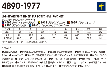 4890-1977/LIGHTWEIGHT LINED FUNCTIONAL JACKET |