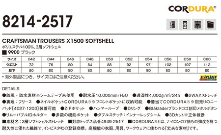 ビッグボーン (BIG BORN) BLAKLADER WEAR (作業服) 8214-2517/CRAFTSMAN TROUSERS X1500 SOFTSHELL