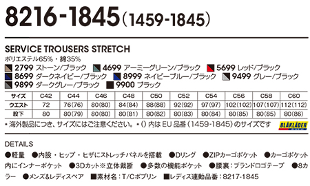 ビッグボーン (BIG BORN) BLAKLADER WEAR (作業服) 8216-1845/SERVICE TROUSERS STRETCH