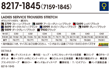 ビッグボーン (BIG BORN) BLAKLADER WEAR (作業服) 8217-1845/LADIES SERVICE TROUSERS STRETCH