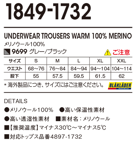1849-1732/UNDERWEAR TROUSERS WARM 100% MERINO |