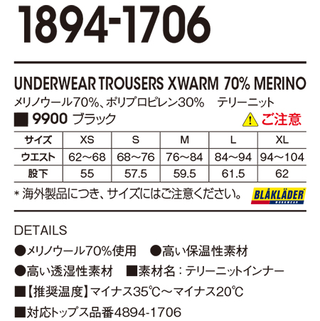 1849-1732/UNDERWEAR TROUSERS XWARM 70% MERINO |