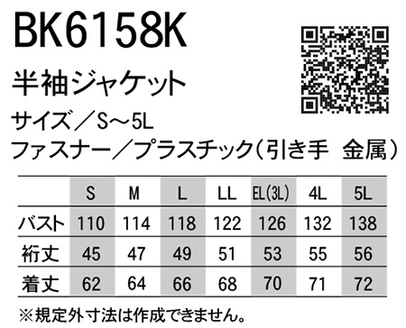 ビッグボーン(BIG BORN) 空冷ファン付き作業服(夏) 「空調風神服」 BK6158K/半袖ジャケット