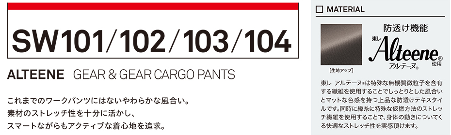 SW103/メンズギアカーゴパンツ ・ SW104/レディースギアカーゴパンツ |