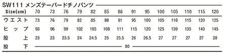 SW111/メンズテーパードチノパンツ SW112/レディーステーパードチノパンツ