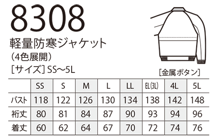 8308/軽量防寒ジャケット