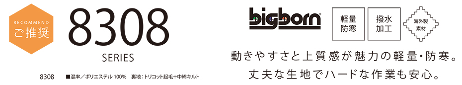 ビッグボーン (BIG BORN) WINTER WEAR (作業服) 8308/軽量防寒ジャケット