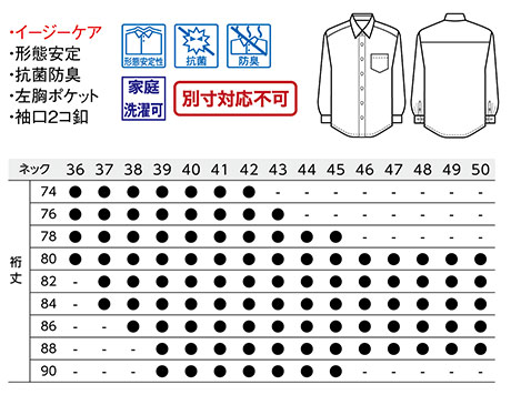 ネック36〜50/裄丈74〜90 |