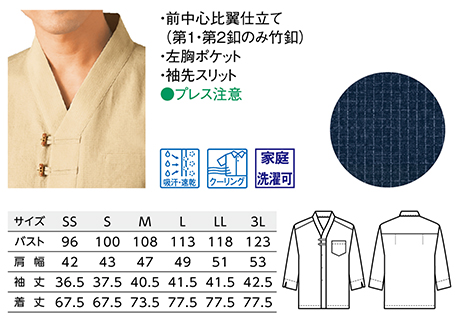 | 44304シリーズ/兼用 和風シャツ(V衿) |
