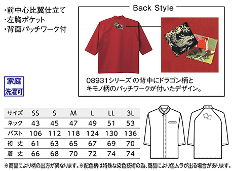 | 09921シリーズ/兼用 和風シャツ(パッチワーク付) |