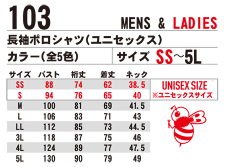 | 103/長袖ポロシャツ(ユニセックス) |