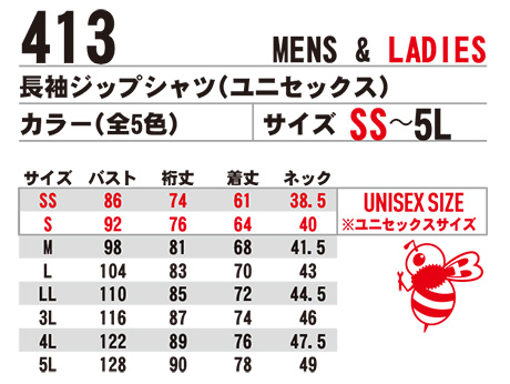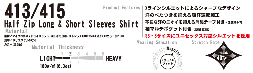 | 413/長袖ジップシャツ(ユニセックス) |
