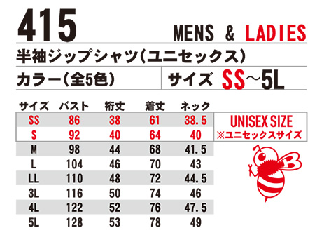 | 415/半袖ジップシャツ(ユニセックス) |