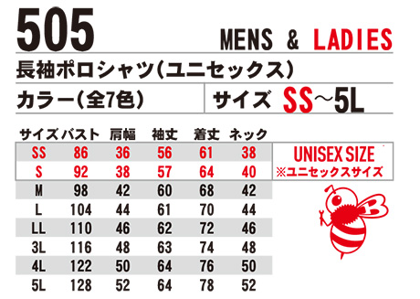 | 505/長袖ポロシャツ(ユニセックス) |