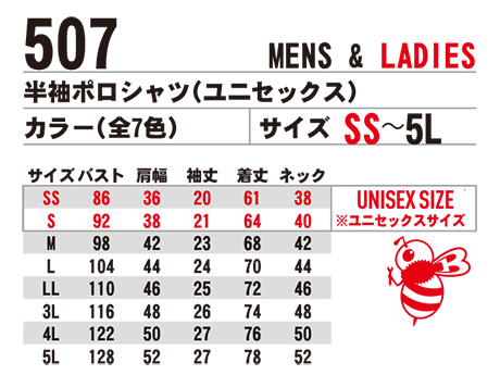 | 507/半袖ポロシャツ(ユニセックス) |