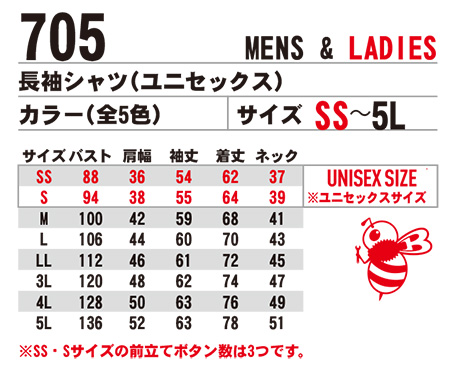 | 705/長袖シャツ(ユニセックス) |
