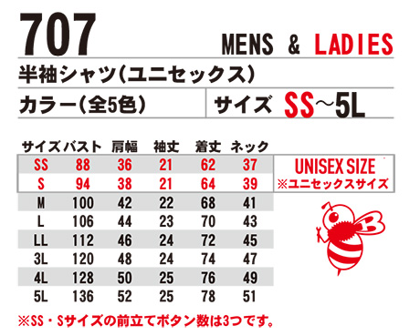 | 707/半袖シャツ(ユニセックス) |