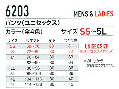 6203/パンツ(ユニセックス) |
