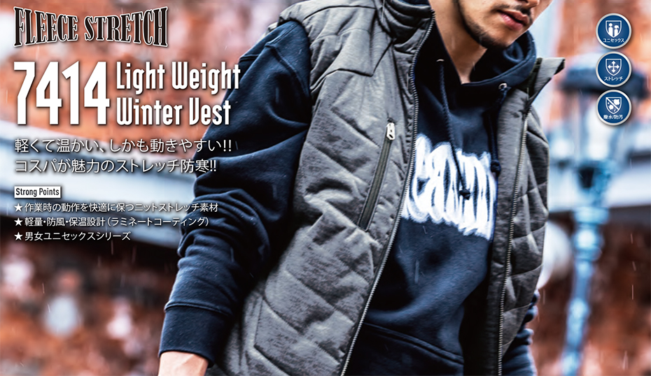 | 7414/防風ストレッチ軽防寒ベスト(ユニセックス) |