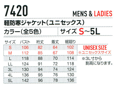 7420/軽防寒ジャケット(ユニセックス)