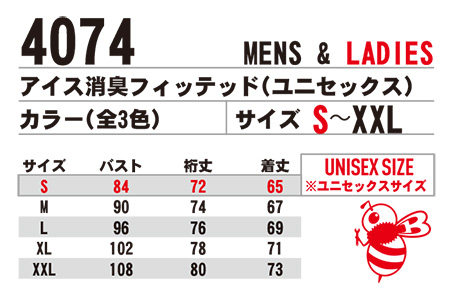 4074/アイス消臭フィッテッド(ユニセックス) |