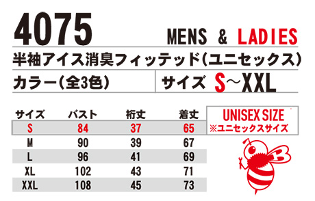 4075/半袖アイス消臭フィッテッド(ユニセックス) |
