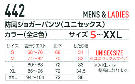 442/防風ジョガーパンツ(ユニセックス)