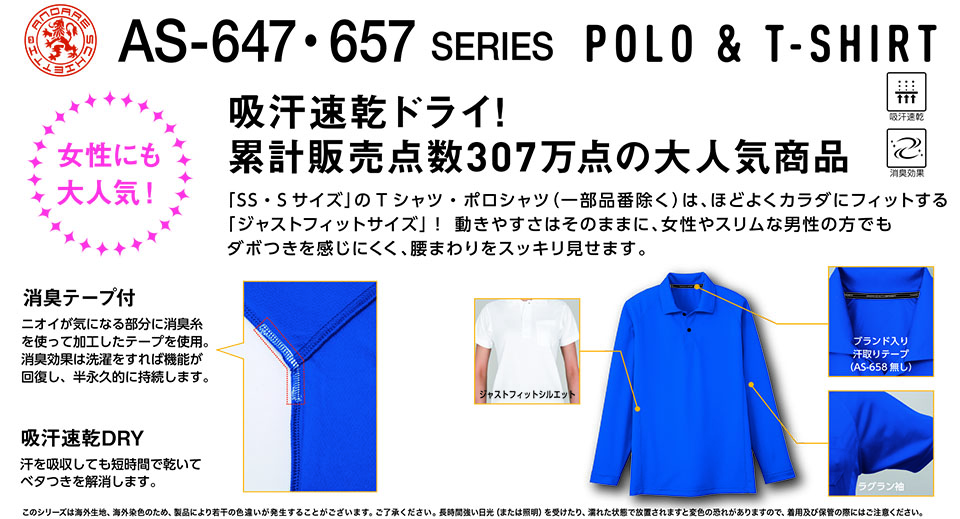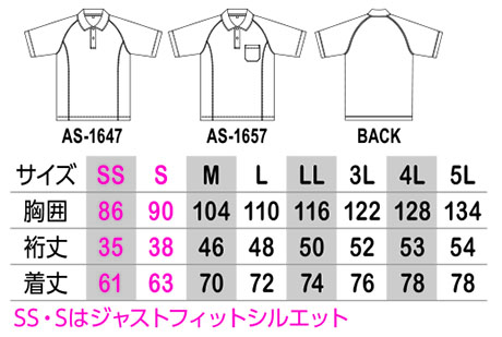 AS-1647/吸汗速乾 半袖ポロシャツ ・ AS-1657/吸汗速乾 半袖ポロシャツ(ポケットあり) |