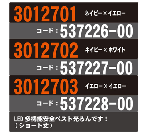 3012701・3012702・3012703/LED多機能安全ベスト 光るんです!(ショート丈)